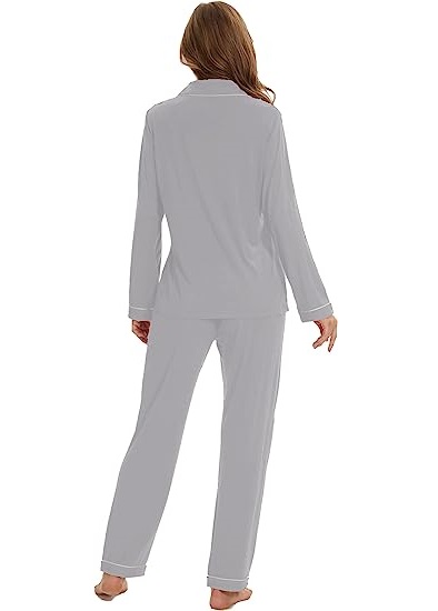 • Two-piece Button Nursing Pajamas: This soft pajama set features a full button-down top that is easy to get on and off. This great feature also makes this pajama set perfect for nursing newborns and recovering from surgery.